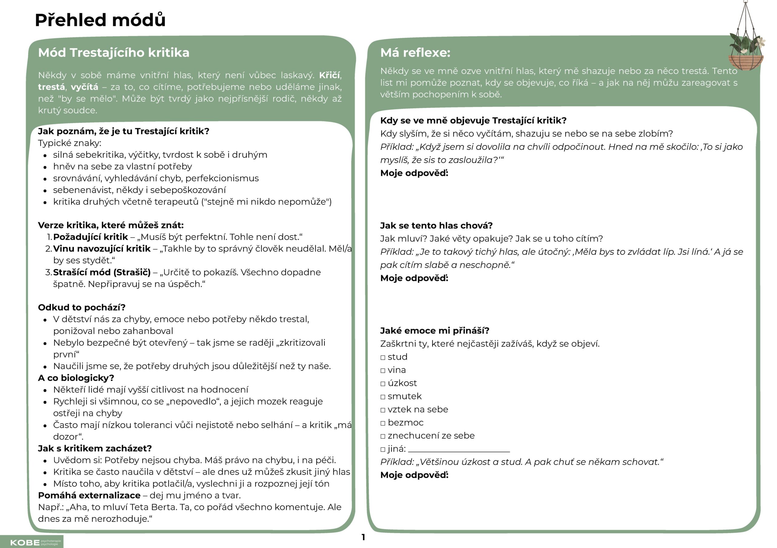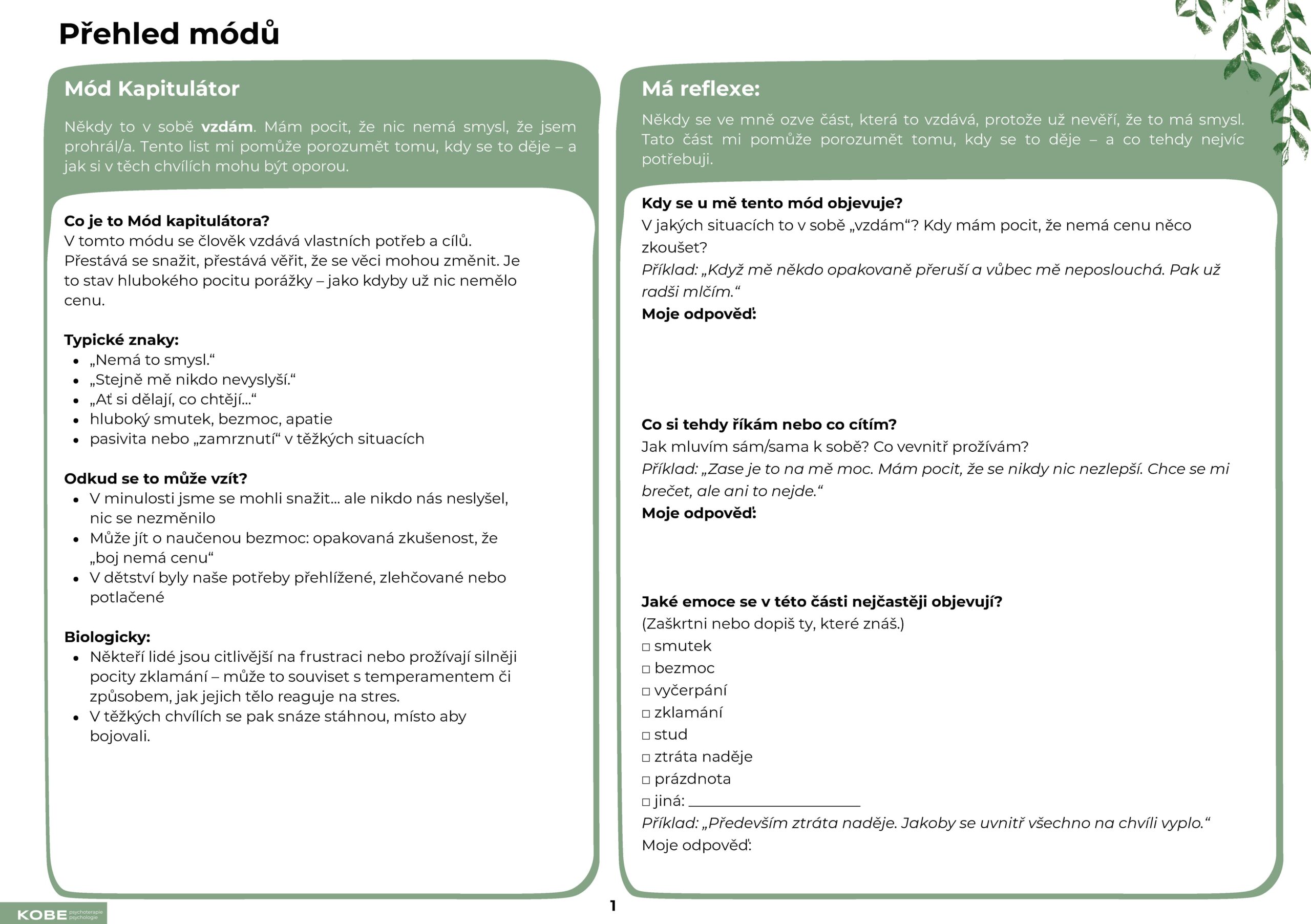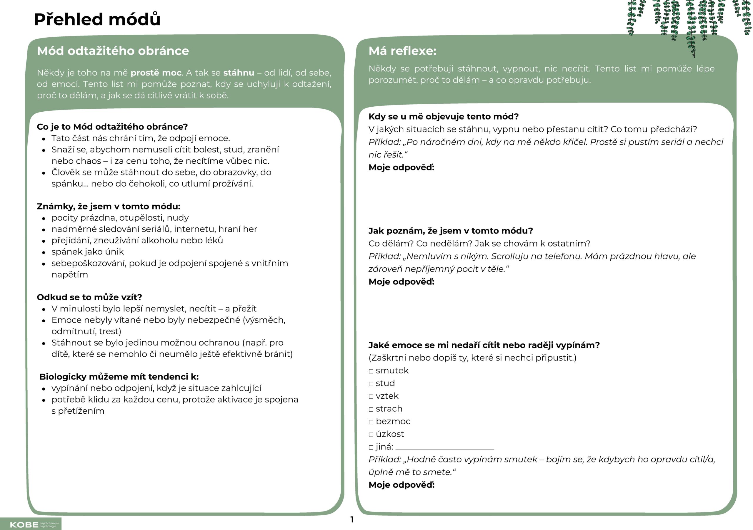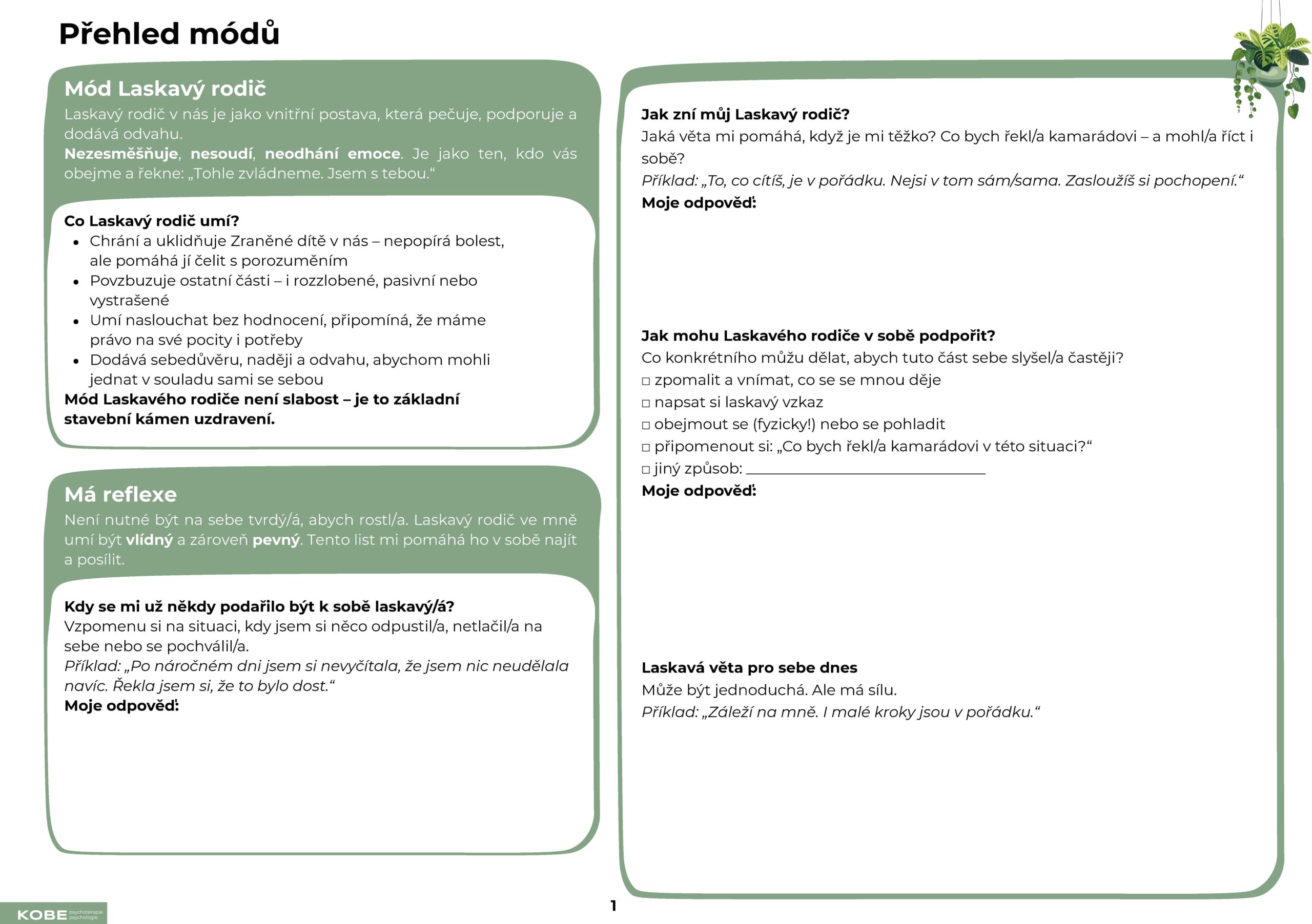 Stáhněte si praktické formuláře dostupné níže, které vás provedou cvičeními pro jednotlivé módy.