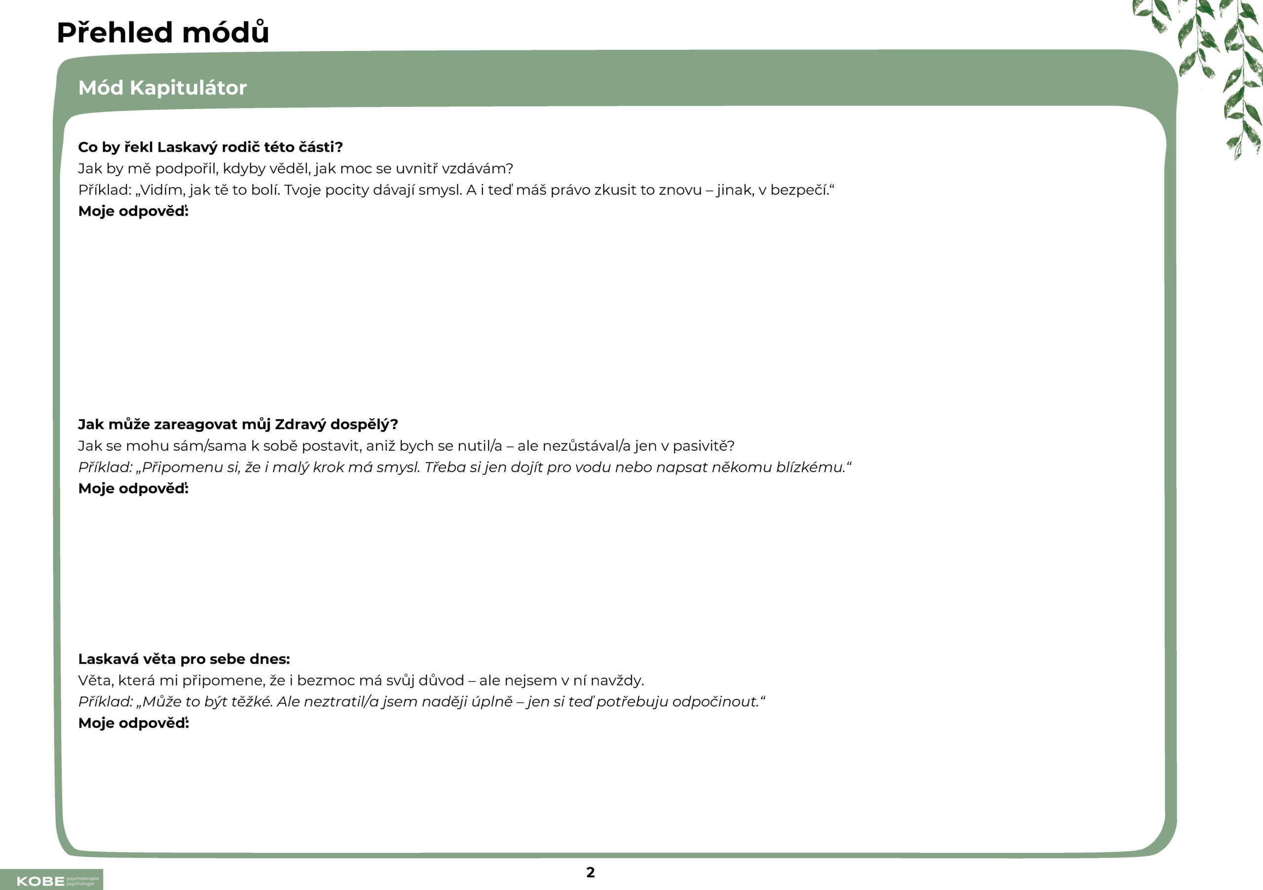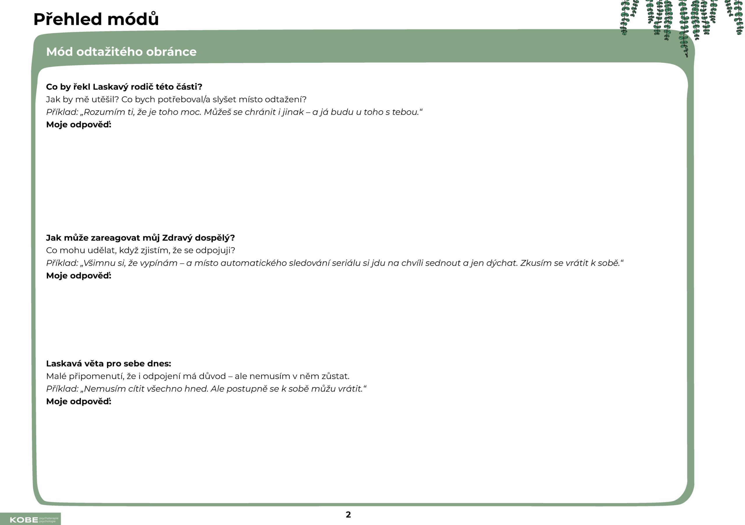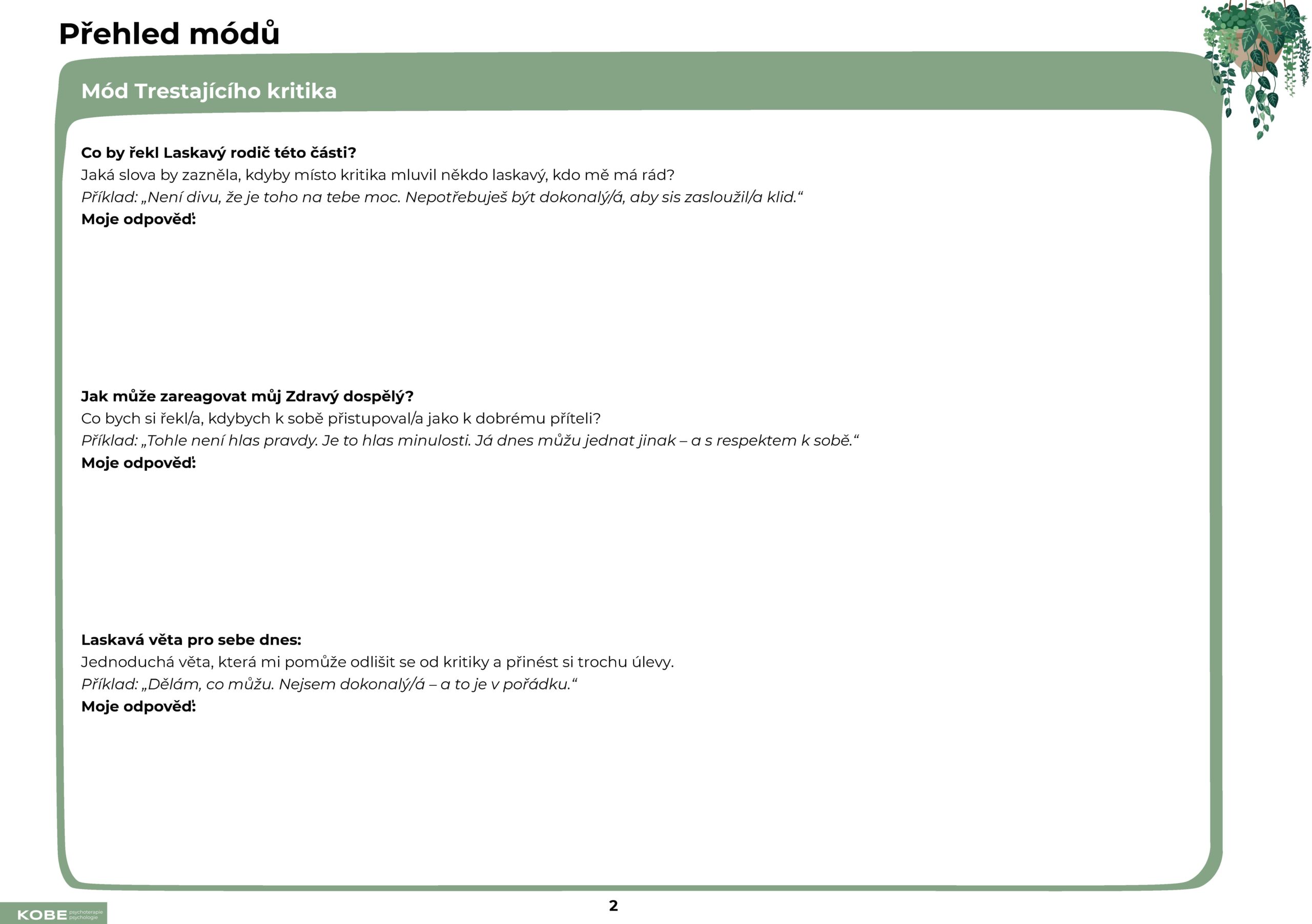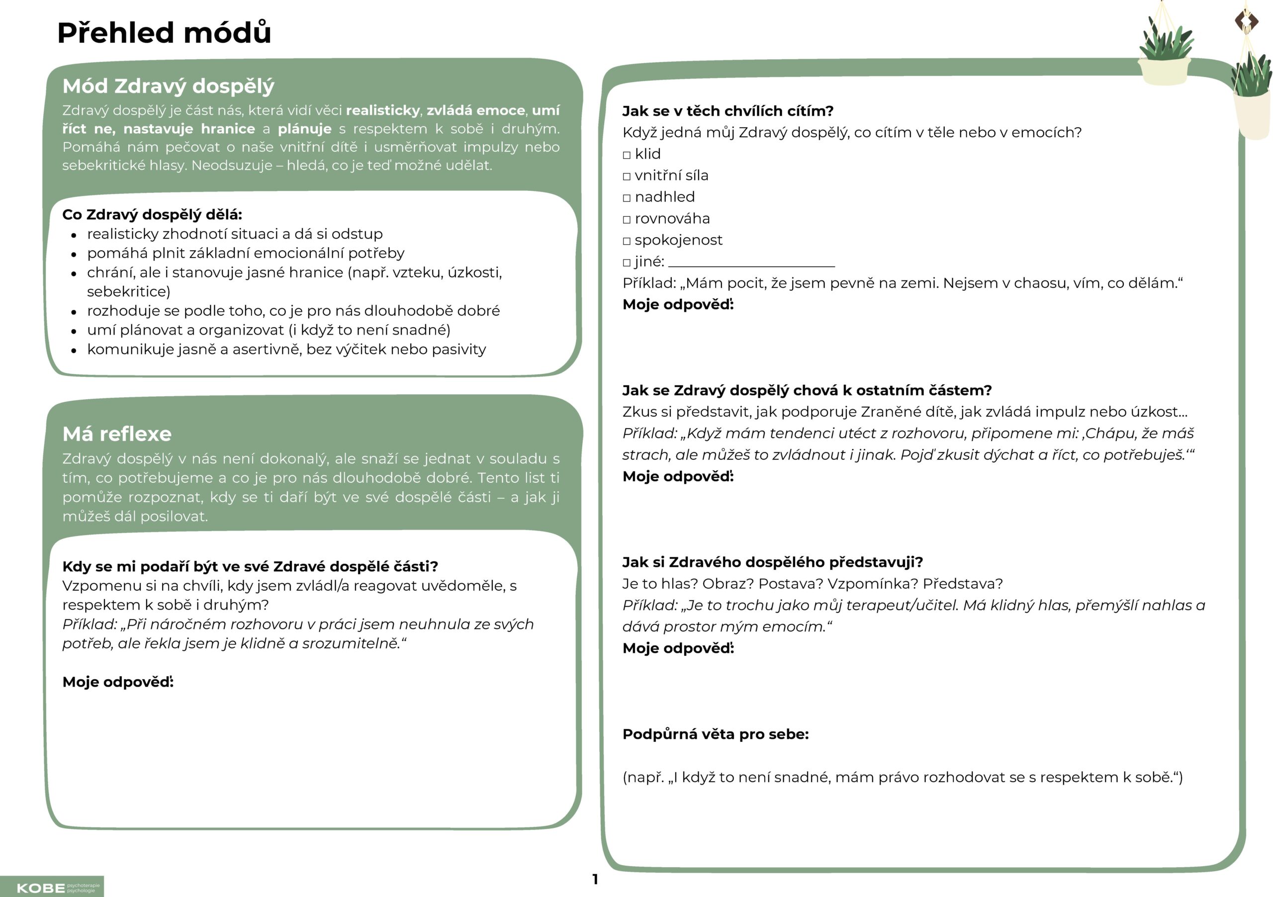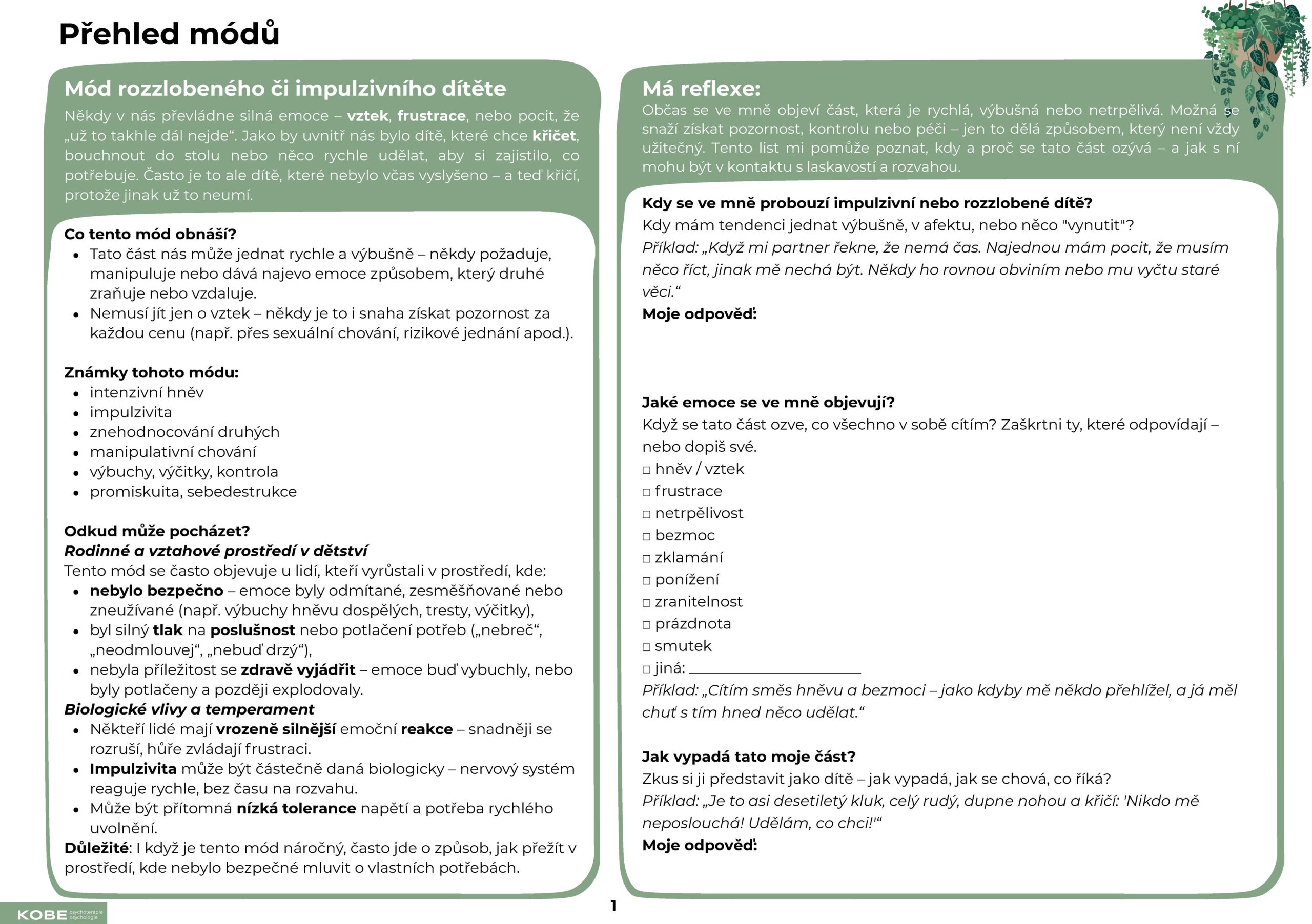 Stáhněte si praktické formuláře dostupné níže, které vás provedou cvičeními pro jednotlivé módy.